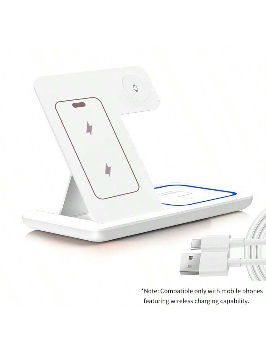3 In 1 Charging Station For iPhone, Wireless Charger for iPhone 16 15 14 13 12 11 X Pro Max & Apple I-Watch, Wireless Charging Station for Air-Pods 4 3 Pro, Foldable Chargers with LED Light