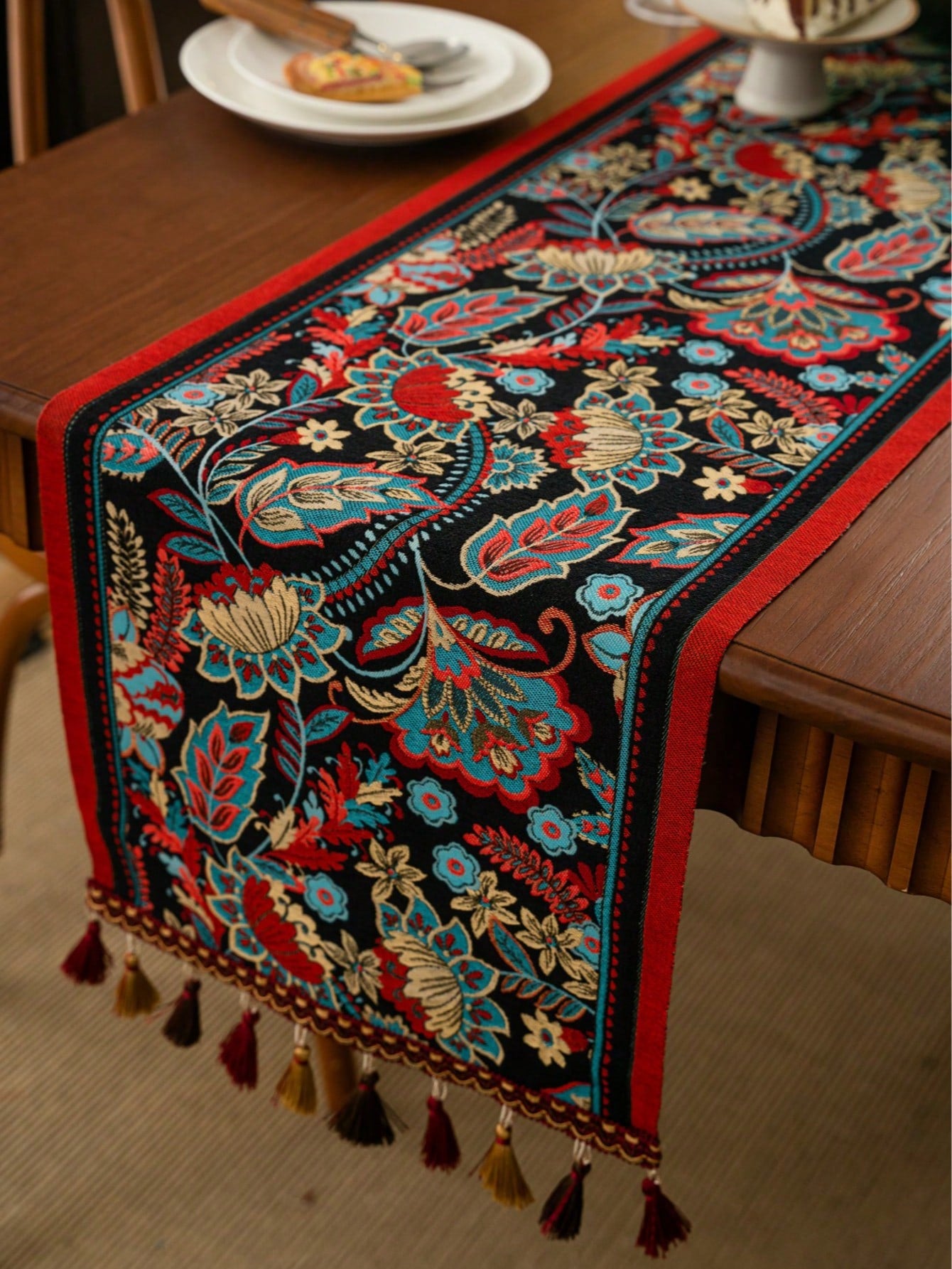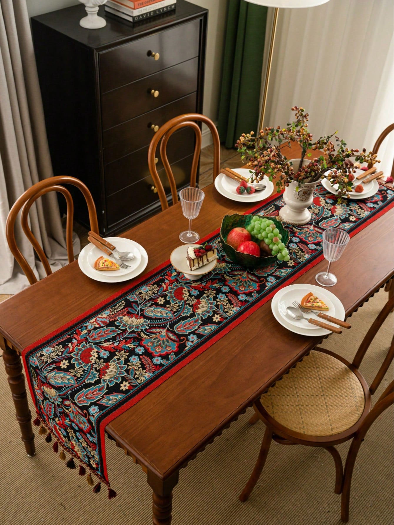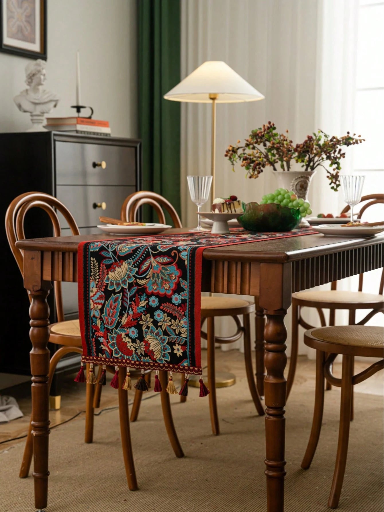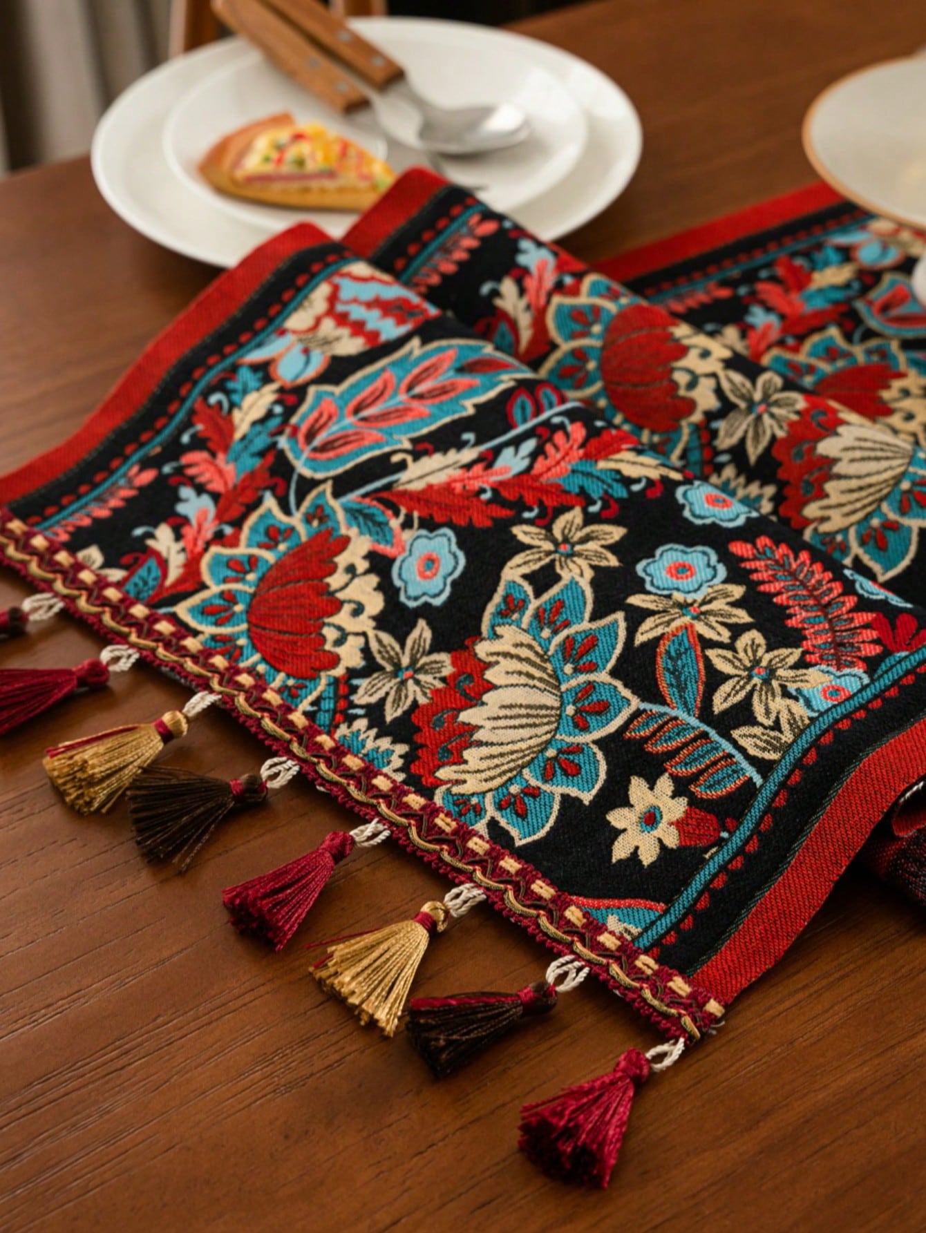 Bring warmth and character to your dining space with this vintage-inspired red floral table runner. Crafted with classic farmhouse charm, it features delicate floral patterns and decorative tassel fringe that adds an elegant finishing touch. Perfect for dining tables, kitchen counters, coffee tables, or bedroom nightstands, this versatile rectangular cloth transforms any surface into a styled focal point. The rich red tones complement both traditional and eclectic interiors, while the quality fabric ensures durability through countless family gatherings and everyday moments. Elevate your home dΓ©cor with timeless style that speaks to refined taste.